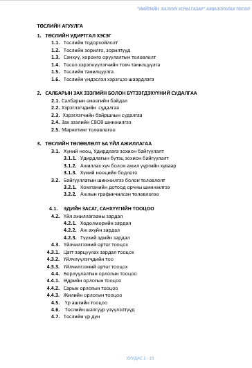 1. ТӨСЛИЙН УДИРТГАЛ ХЭСЭГ