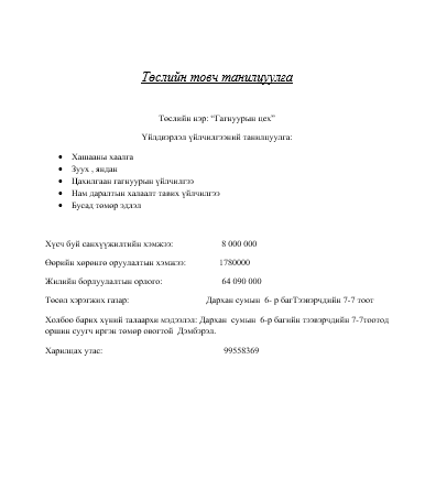 Төслийн нэр: Гагнуурын цех