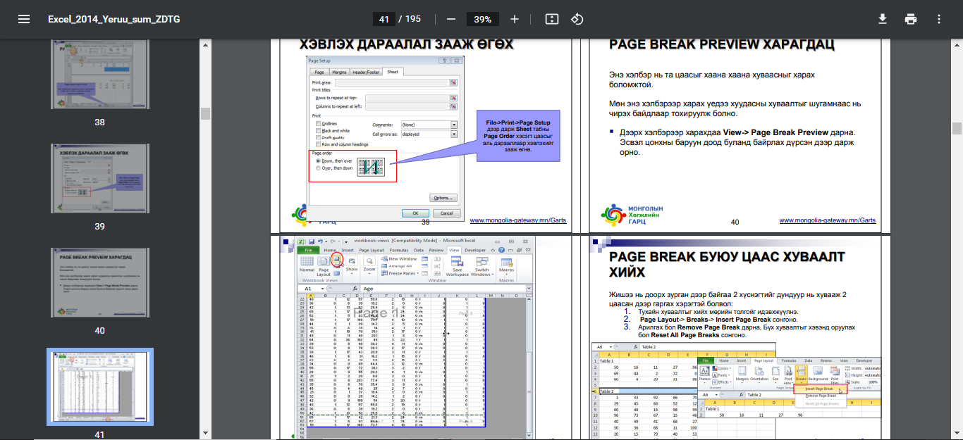 195 хуудас бүхий слайдаас бүрдэх Excel програмын ахисан шатны заавар хичээл.